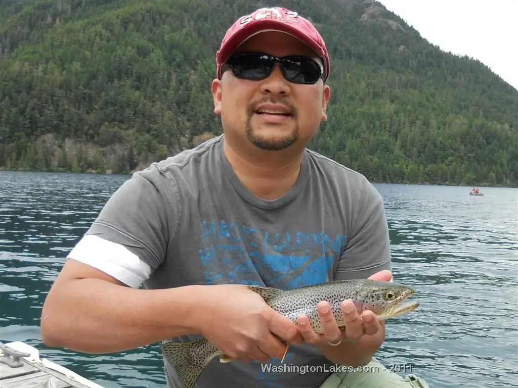 Right on IB! You really brought back some awesome memories from my childhood.This is one of my all time favorite lakes. As a kid,I lived in Port Angeles and my friends parents owned a cabin near the lodge. We spent many trips there fishing/camping and that where I learned of the legendary "Lady of the Lake" and other great folklore. Good times I must say.Thanks for the report,gorgeous fish too