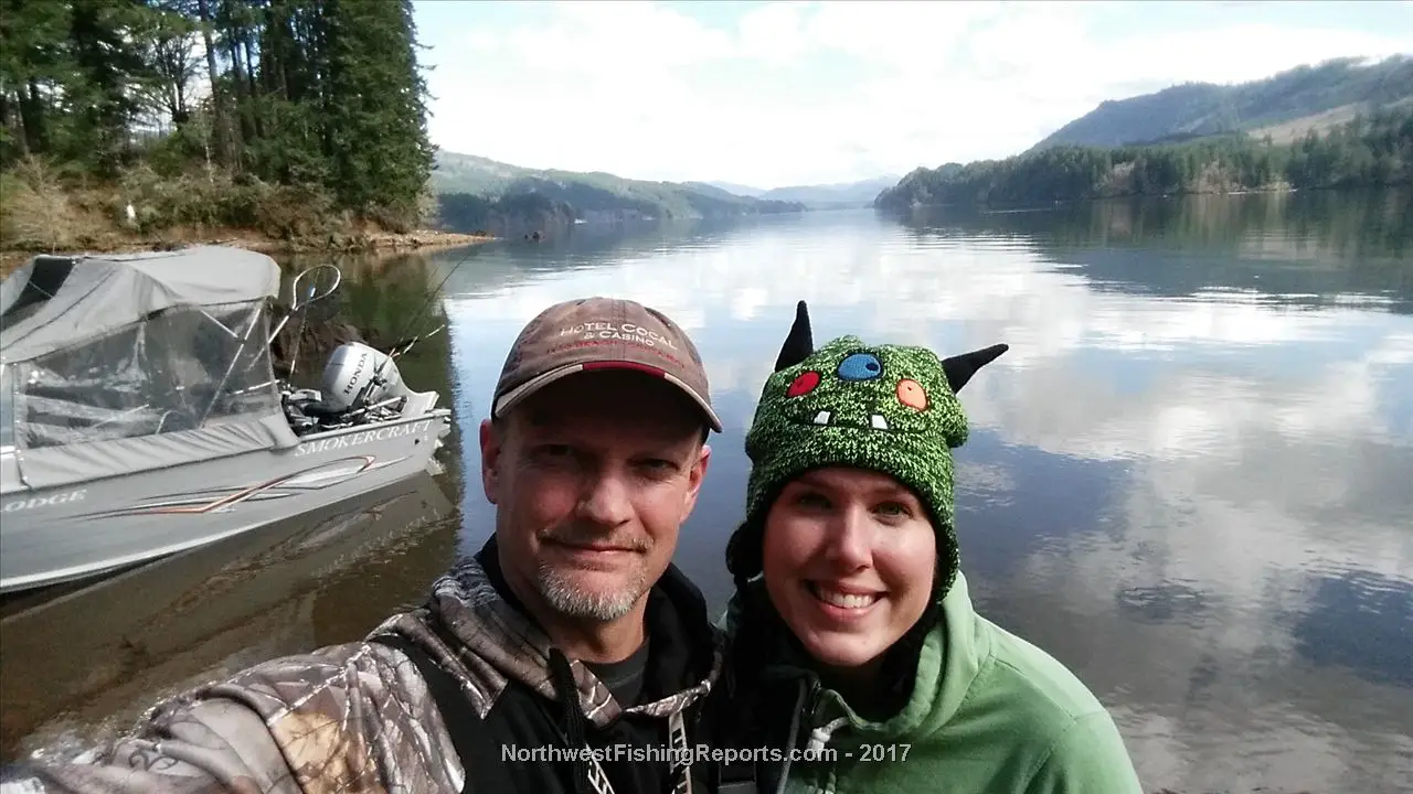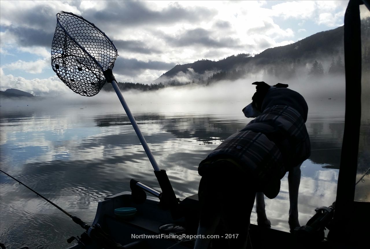 Luckily we heard about the landslide blocking access to Speelyai ahead of time and took a detour through Amboy.  Sounds like it will be a while before the road will be cleared.  Had lines in the water by 8:30 am in dense fog.  Water is murky with lots more debris than last week.  Water temp 39-41.   Ended up with 11 keepers, released 4 babies and probably lost 10 others.  Found a school right at the bend heading towards the dam.  Fish are still on the surface and were jumping.  Long lined 150-160 back with no weight.  Played around with the downrigger at various deeper depths but no strikes.  Haven't caught a Pikeminnow in 2 trips this year.  Fishing was good not great but gave it a 4/5 because when the fog blew off the weather was fantastic.  Lots more boats out enjoying some much needed vitamin D.  Bright colored dodgers and hand tied wedding rings.