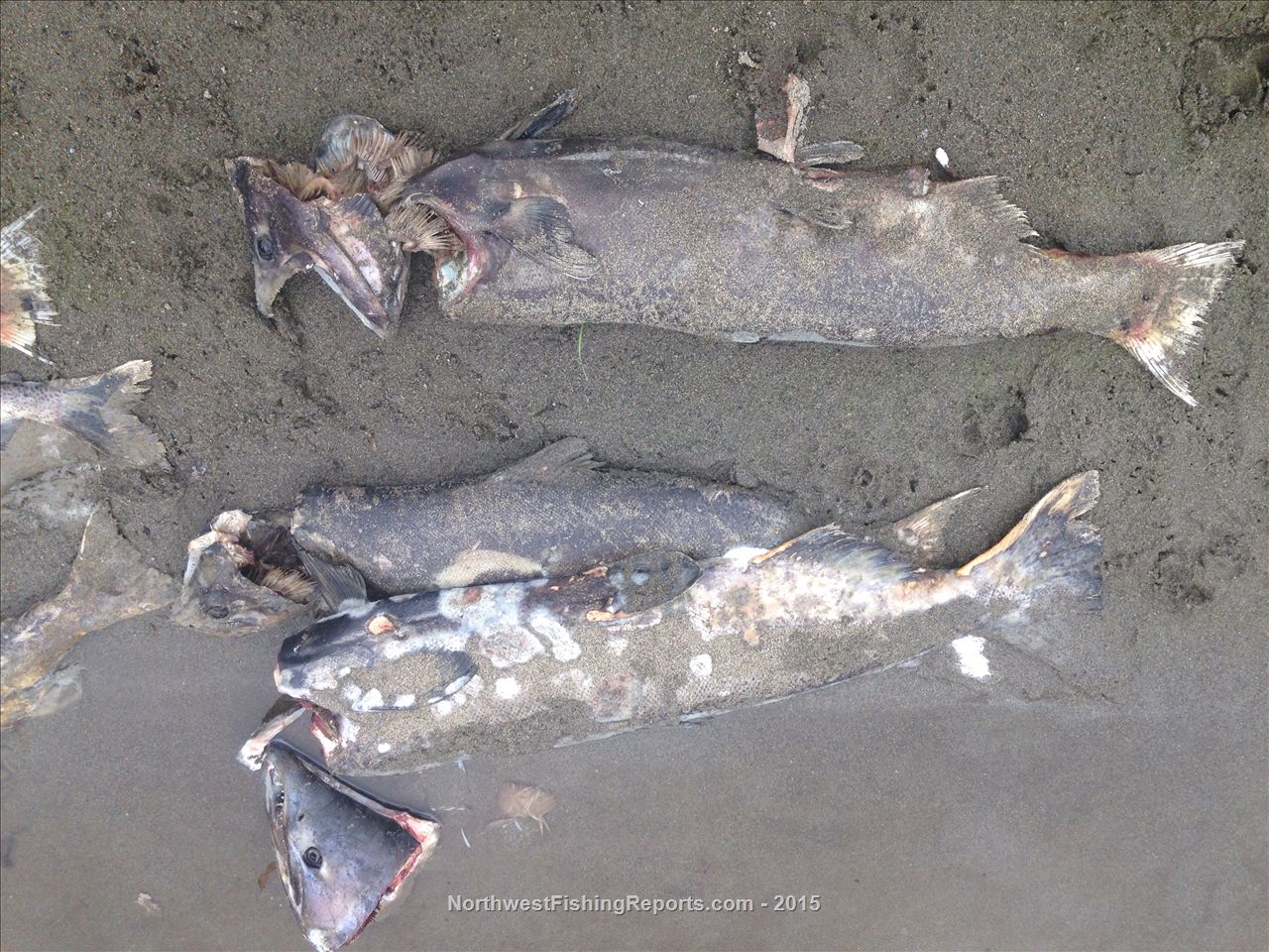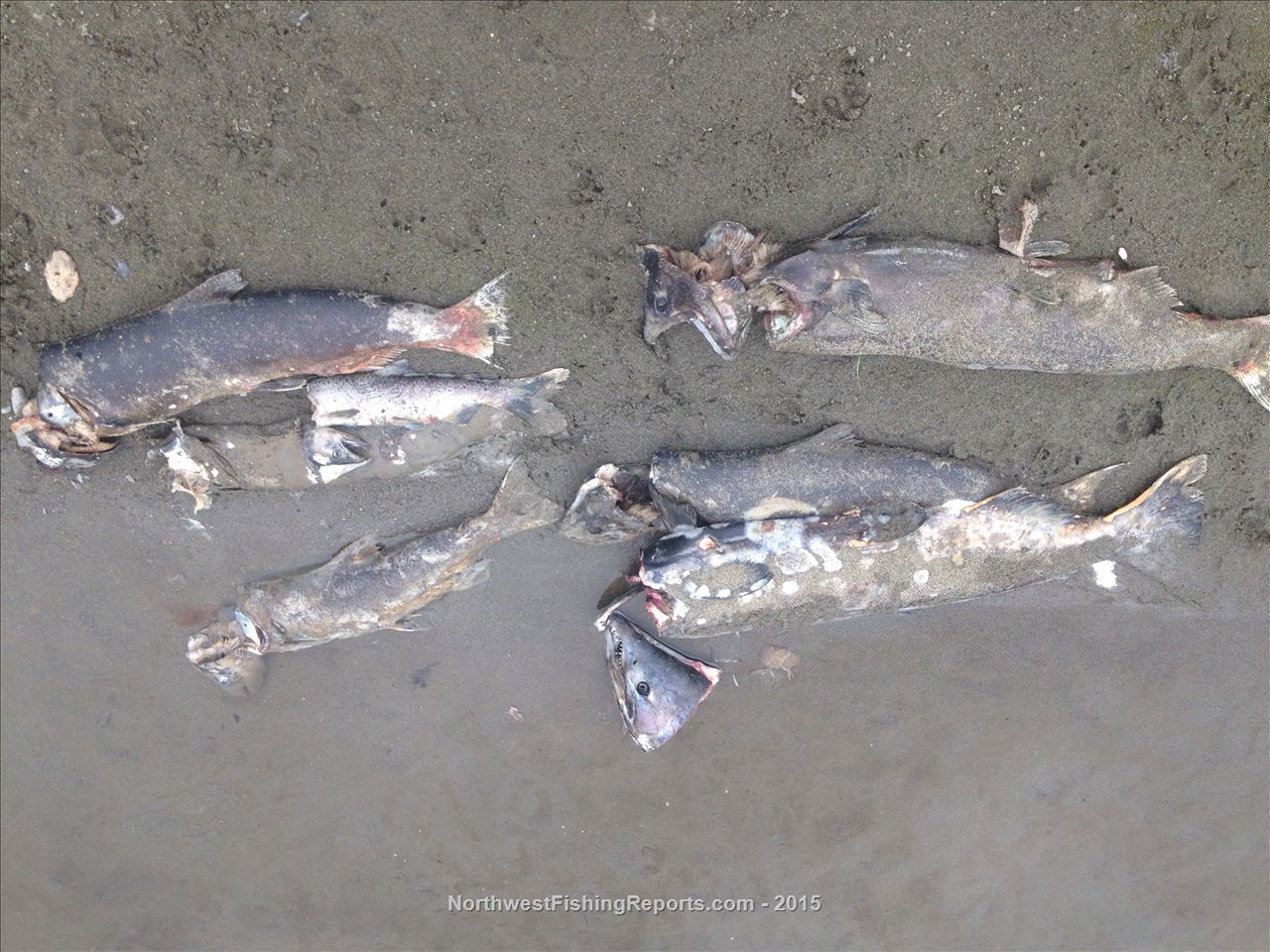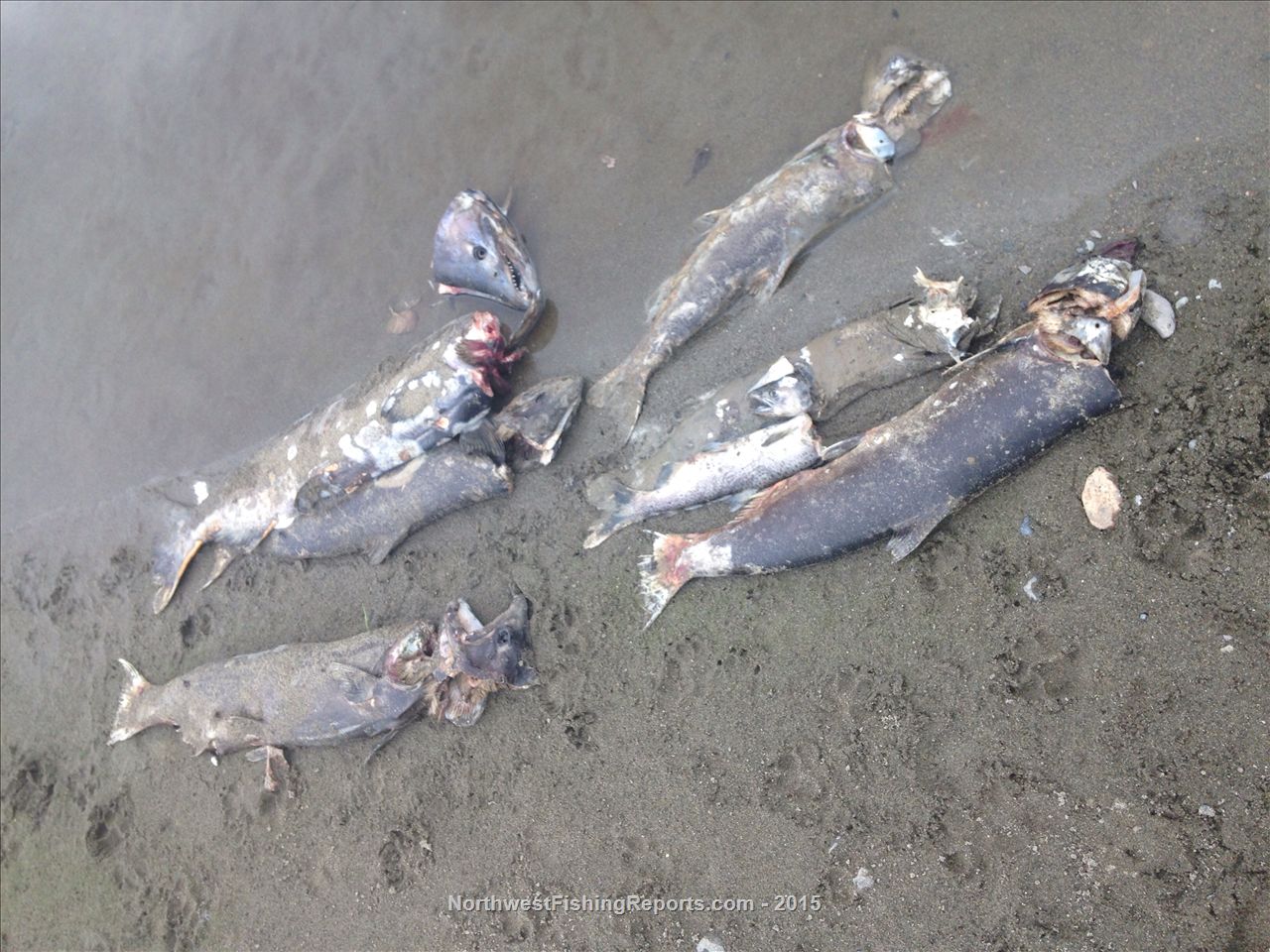 10/5/2015 2:09:00 PMThe fish are spawned out Chinook salmon, and they were recovered by WDFW or another agency conducting "spawning ground surveys" in the area to help calculate this years total Chinook escapement rate. The fish would have been collected and sampled already dead in the stream. They use expansions of this number in conjunction with other information as a tool in population monitoring and season setting.