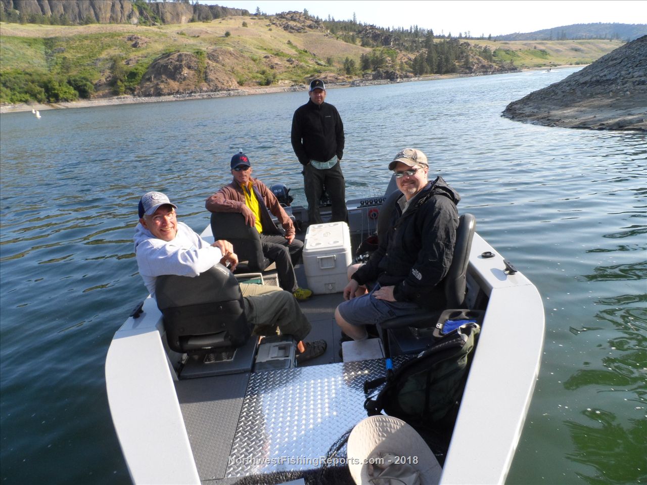 MAYDEN VOYAGE DAY for Captain Dave Grove's new guide boat.  Dave rounded up four of his friends to chase some walleye in his new boat along with putting some break in time on the new Yamaha VMax motor.  The new boat is a custom built aluminum sled with a nice V bottom, high sides and wide gunnels.   It rides really well in the choppy water and can run along at 39 mph with the five of us on board.  We launched at Fort Spokane and ran down river to Hawk creek.  WOW the wood!  I have never seen such wood in that area.  If you choose to go down that way be very vigilant and keep a sharp eye out for dead heads and floating debris.