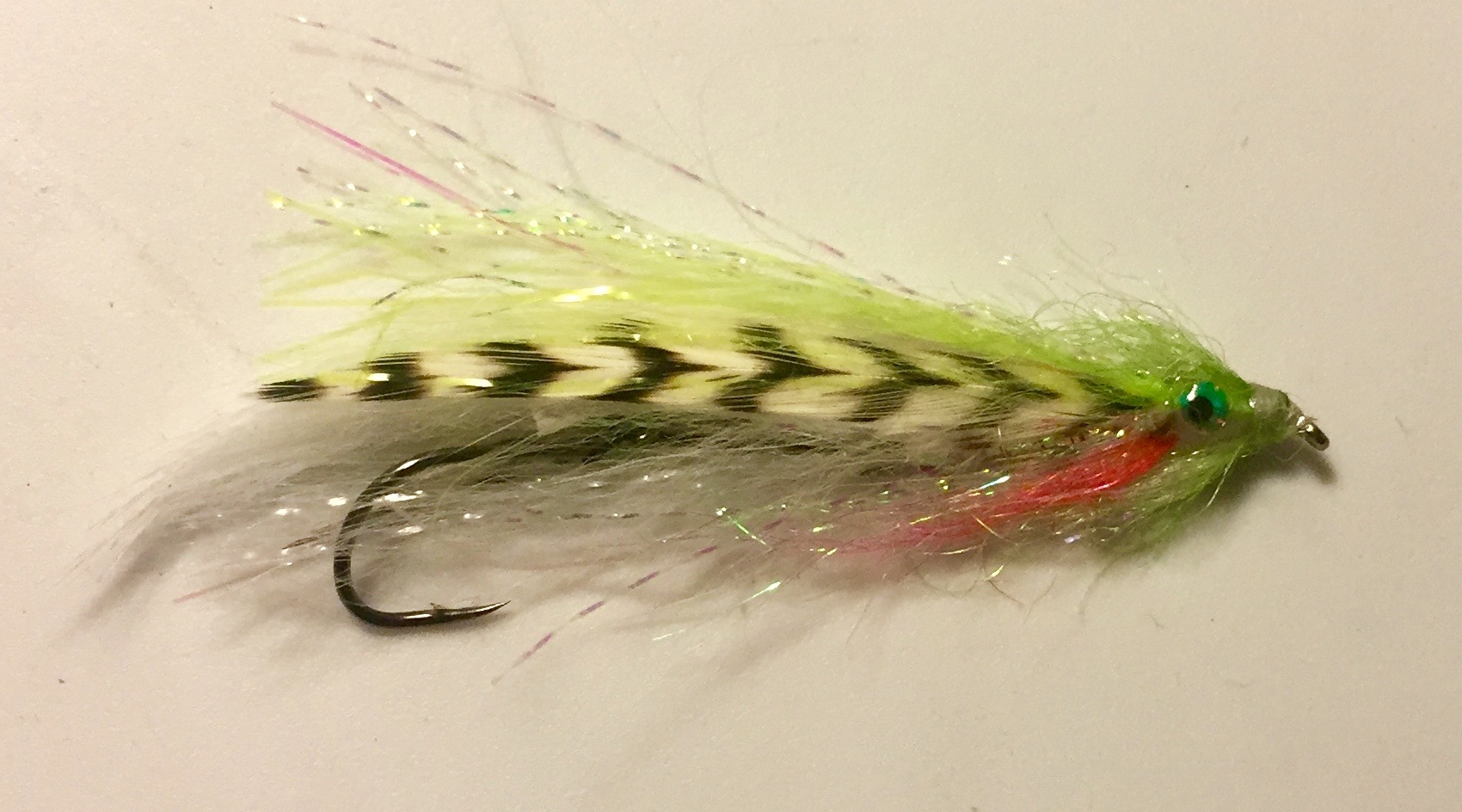 Trailer hook, Saltwater components, slightly weighted with a rabbit back for action and plenty of flash for taunting devious coho. It's face resembled a chicken to me, so the name beach chicken was born.
