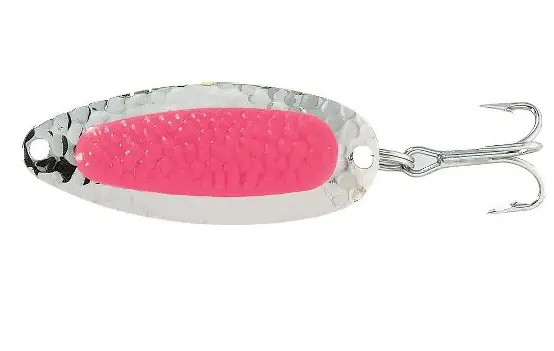 As far as size goes I like to have several in sizes from 1/4 oz up to 1/2 oz. That gives you lures that you can cast different distances and cover different water depths. Color: silver with red/pink/or orange insert are the goto combos. Pick up a few and give them a fling. Be sure to use a snap swivel with them. Good luck!