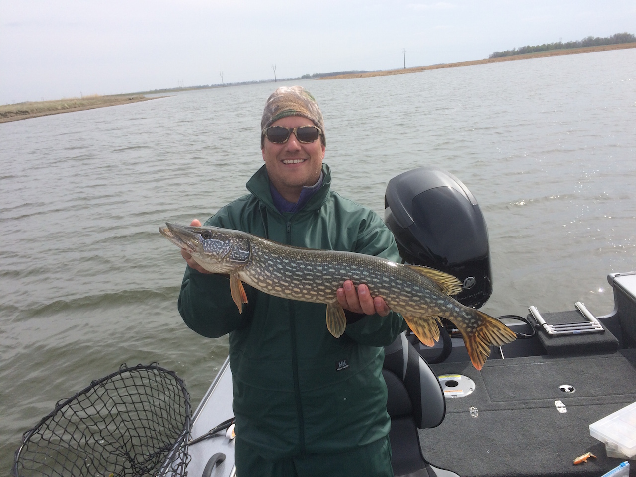 way to go, Buddy. I frequently went by Devil's Lake when it was a 'pond' while traveling to college NW of there at Bottineau. That would be unique fishing around barns and farm machinery now. Good to see the pike are doing well. All I see on TV for Devil's Lake is usually walleye and perch.