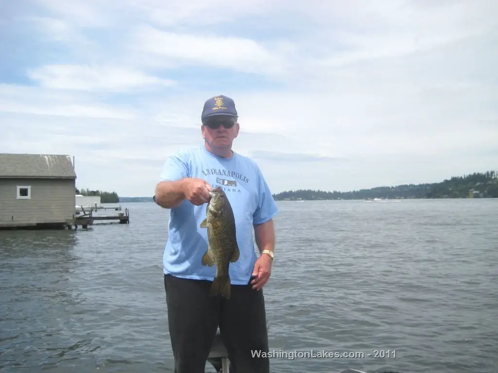 Had a guide trip on Lake Washington on the 10th with J.W. Brewer, return client from Indiana. Weather was great, fishing wasn't too bad. Started out with topwaters fishing shallow flats adjacent to deeper water, had one big blowup, but the fish didn't hook up, and we couldn't get any response from the follow up baits. The sun came up quickly and we moved up towards the north end to target largemouth. After about an hour with no activity we switched up and started fishing jerkbaits and spinnerbaits and after catching a few small fish, we switched up to shakeyheads and drop shot rigs and targeted deeper docks around mercer island to finish out the day. Final tally was 10 smallmouth with most in the 1-2 pound class, and 2 in the 3 pound class. Sniper Bolts in Dark Brown took the bigger fish, and Robowoms in Aarons magic color accounted for several others as well. I also took one decent fish on a shakeyhead with a Reaction Innovations Flirt in the Okeechobee Craw pattern.
