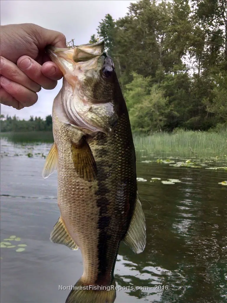 Brought 3 poles this time with heavier line 10lb test 8lbs and 12lbs.  Spinnerbait, swim jig and usual top water minnow perch in larger size.  Hard to do much casting while getting blown around.  Spinnerbait just catches weeds and swim jig wasn't doing much better.  Had a few little hits on top water minnow when I could find a place to sit for more then a few seconds.    So windy, waters warm, and lots of weeds...put on a buzz bait.  Sure enough about fourth cast as soon as it hit the water fish on!  Good fight and had to find my drag on bait cast reel.  He was hooked solid and got him in with just one jump.  Nice 14" largemouth good way to start got him about 10:30am.  Had some more hits on top water looked liked bluegills or sunfish by hits not really taking the minnow.  Sure enough on cue had two boats come cruising by looked like they were trolling or just looking for a spot...I was closer to shore in the pads when cast my minnow to open spot one move and bam fish on...he went down and fought well.  Got him in about 3 ft of water so had a good struggle.  Landed him and he swallowed the minnow.  Nice 15" bass they are getting bigger!  And nice to have an audience...but these guys wouldn't leave me alone...I moved a bit down the lake they had to be 20 ft from me and one guy every other word was F this or F that...think on a 440 acre lake with 4 boats on it you could set up some where else??? I finally had to move couldn't take the stupid talk.  I have been to this lake twice and both times had people decided to get right on top of where I am.  I don't get it this lake attract morons or what?