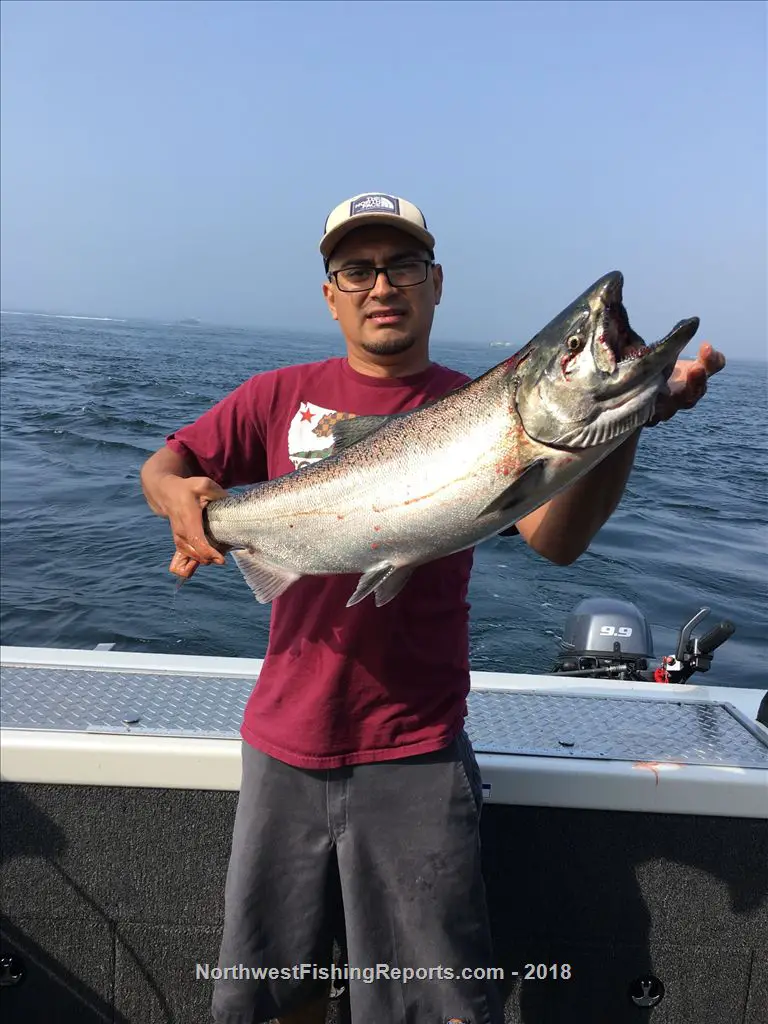 Headed out to Mid channel bank from Everett marina out in the fog. Decent day of fishing for chinook on the last weekend for the summer. Hooked and landed this nice fish in about 150 ft of water using a red racer flasher to a blue/green/white OG2 and bloody tuna scent. Rated a 3 as this was the only legal fish we were able to take home. Had a big smile in my face on one of the pictures to show my excitement. Lol