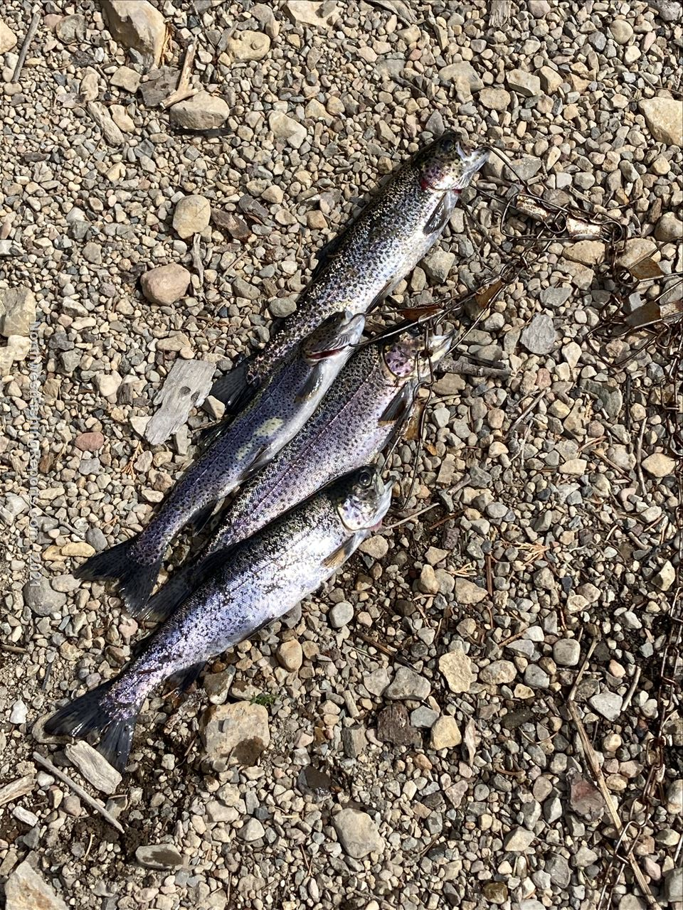 I camped at La Wis Wis and drove up to Dog Lake hoping to throw spinners for brookies, but the wind was blowing the spinners right back at me so I decided to stick to fishing off the bottom and catch whatever would bite. 16 inches off the bottom, half an ounce of lead so I could cast out far enough given the wind, and two chartreuse garlic scented power eggs. First fish came in the first five minutes, but swam itself into a snag that was just too far out of reach. Since it was caught with bait, I counted it towards my limit. I didn’t land it, and I’m pretty sure I saw it shake loose from the hook, but I ended up breaking off and didn’t know for sure so rather safe than sorry. After that it was about half an hour or 45 minutes between fish. All of them had this vivid coloration before they were bonked and bled. I noticed too that their stomachs were full of gravel, and not little bits from caddis fly casings, pea gravel sized and jagged. I wonder if that was for ballast. They ended up as dinner that night, with zucchini and parm and rosemary garlic parm potatoes.