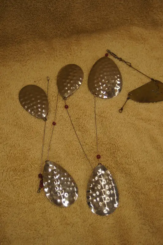 Hate to start this over but found another set that is built along the same lines as the above set but this has 2 to 3" willow style spoons. The spoons have "Jimmie Stanford" stamped on them. Any idea who this guy is/was and time period he put these things out? Google can't find him. All I get is facebook pages and stuff unrelated to fishing.