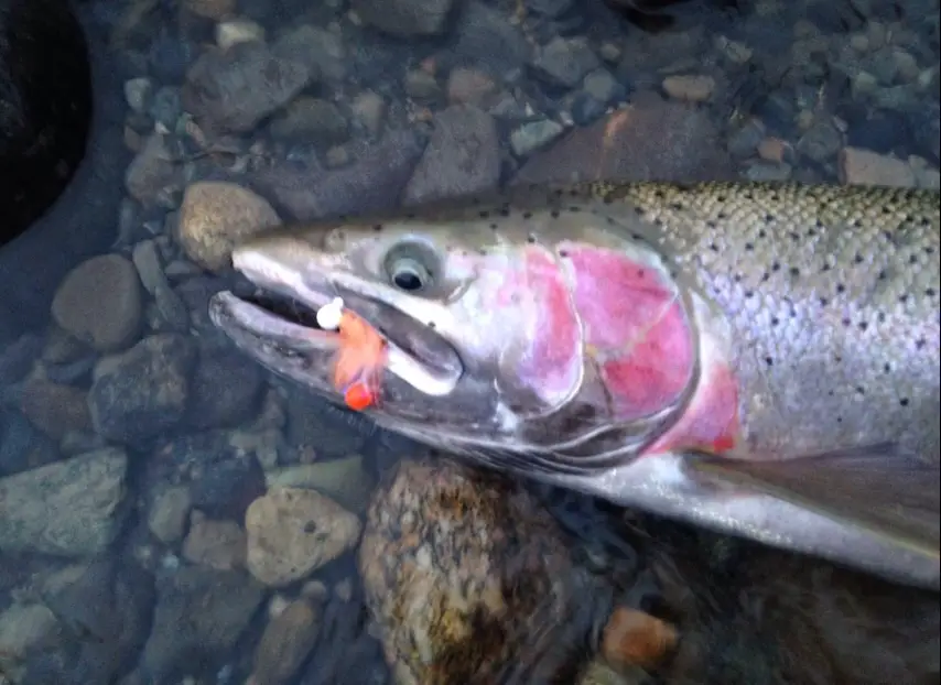 Got this one today..Not the prettiest fish, realllly dark, but the meat isn't bad on it and it hasn't spawned yet so I wouldn't call bonking it a mistake. Still darkest steelhead I've ever caught. ![Laugh [laugh]](./images/smilies/msp_laugh.gif)
