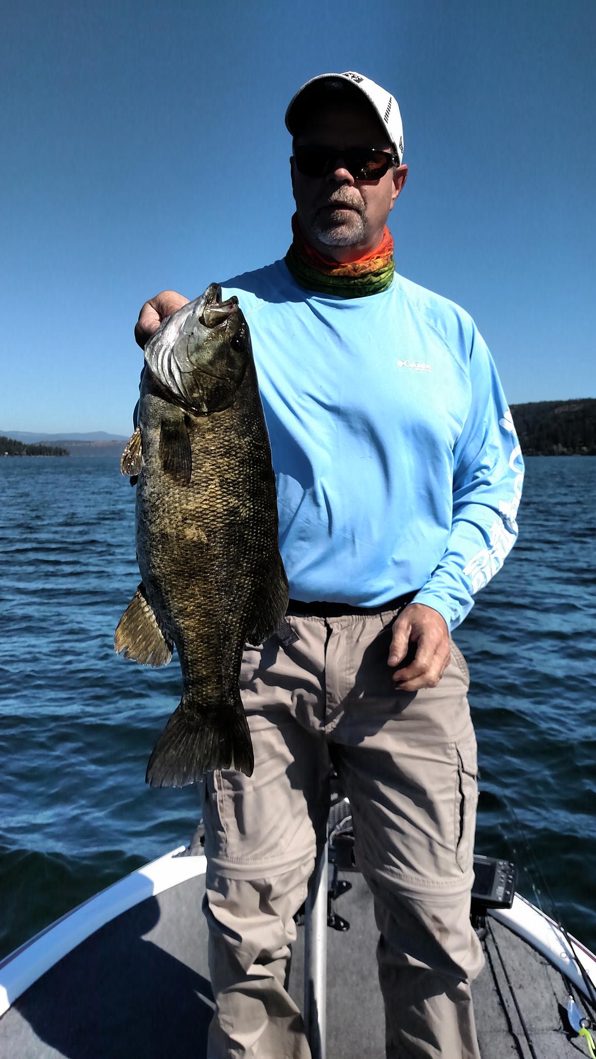 The scale called this small mouth 5lb 2oz. I try to trust the scale but I thought this one was over 6lb. Caught July 30th in Cda Lake Idaho on a one oz spinner bait while pike fishing.