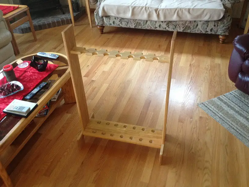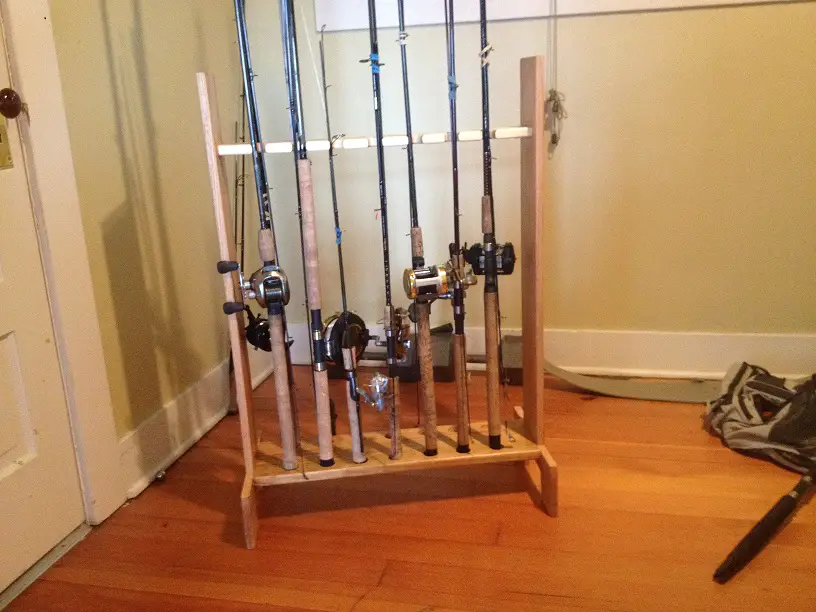 I cut the end off of a bunch of spent 12 ga shotgun shells and slit them, screwed them to a board. They work ok. What works better is the two part one I got from Amazon. Adjustable and holds them securely. My spare rods are all just tipped into a corner in the garage, laying on top of each other...