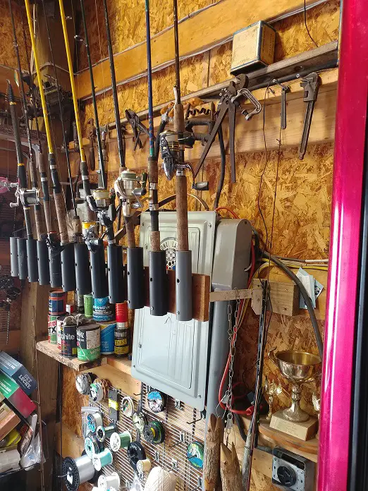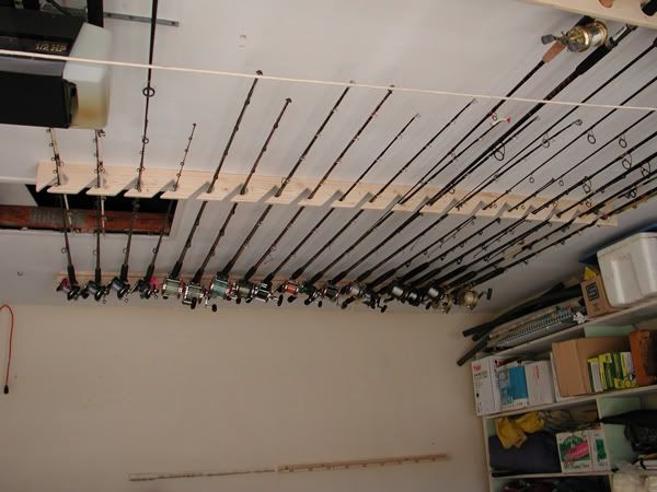 My dad made me this for xmas a few years ago. but most of my rods are stored in rafters of my garage.... I have a stairway to the 2nd floor of my garage that makes easy access to the rods.