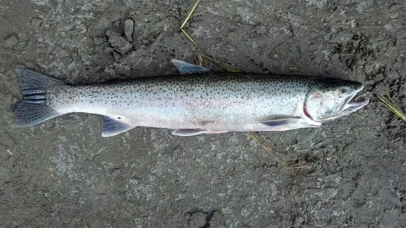 Got this one today..Not the prettiest fish, realllly dark, but the meat isn't bad on it and it hasn't spawned yet so I wouldn't call bonking it a mistake. Still darkest steelhead I've ever caught. ![Laugh [laugh]](./images/smilies/msp_laugh.gif)