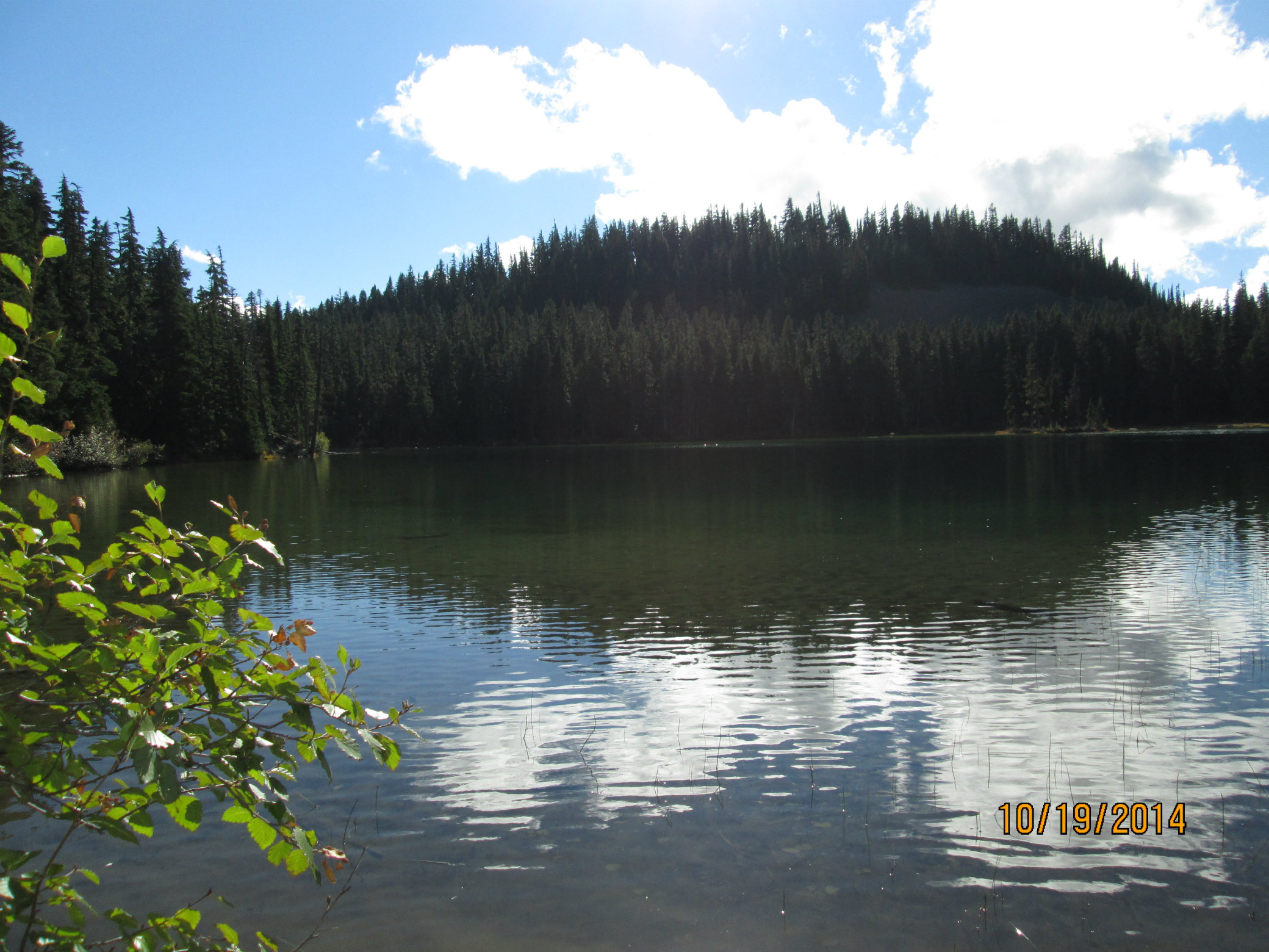 The lake is beautiful and has easy shore access for fishing. To my knowledge the lake holds Cutthroat and Rainbows. I have only made this trip once, however, and it was fall. I was very happy to catch a very nice Cutthroat out of this alpine lake! Elevation is almost 5300 feet, so dress accordingly and bring mosquito repellent.