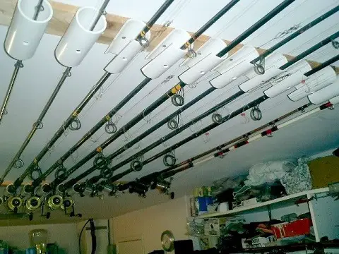 My dad made me this for xmas a few years ago. but most of my rods are stored in rafters of my garage.... I have a stairway to the 2nd floor of my garage that makes easy access to the rods.
