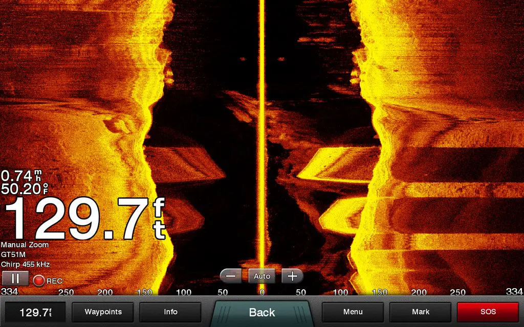 You need to read the manual for your specific unit closely because the way you set a waypoint on sideview is usually different from placing a normal waypoint. If you do it wrong, your waypoint will end up where the boat is and not where the target is.