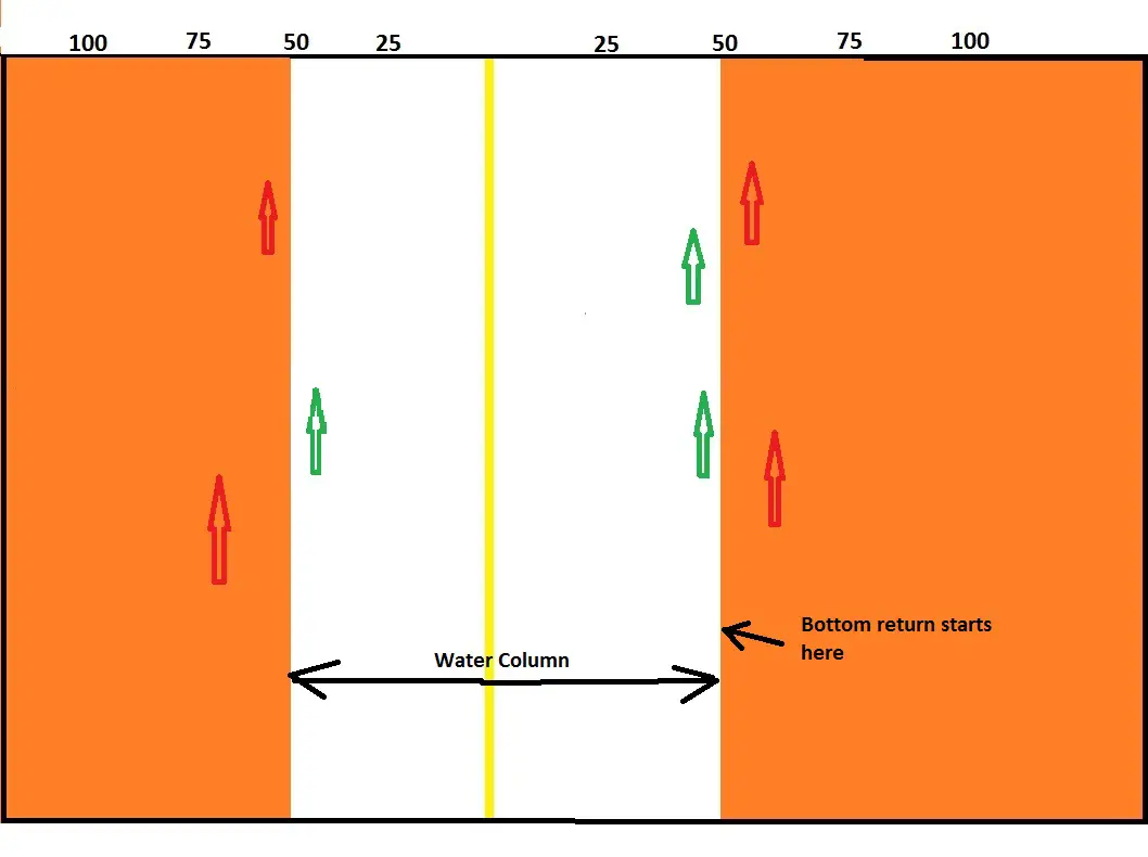 Any returns inside the red arc in my drawing above get drawn in that nice clean black area between the center line and where the bottom starts on the screen. Thats what we are calling the water column. I know its not really a "column" at all, which is confusing.