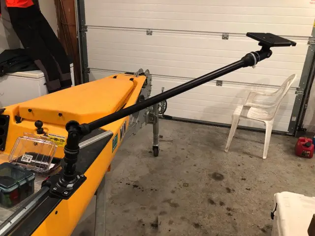 You mount this boom on to any vessel, kayak, boat, anything literally. The boom reaches out 22", I think. You are able to angle it in different ways as to get the camera angle you want on your fishing, etc.